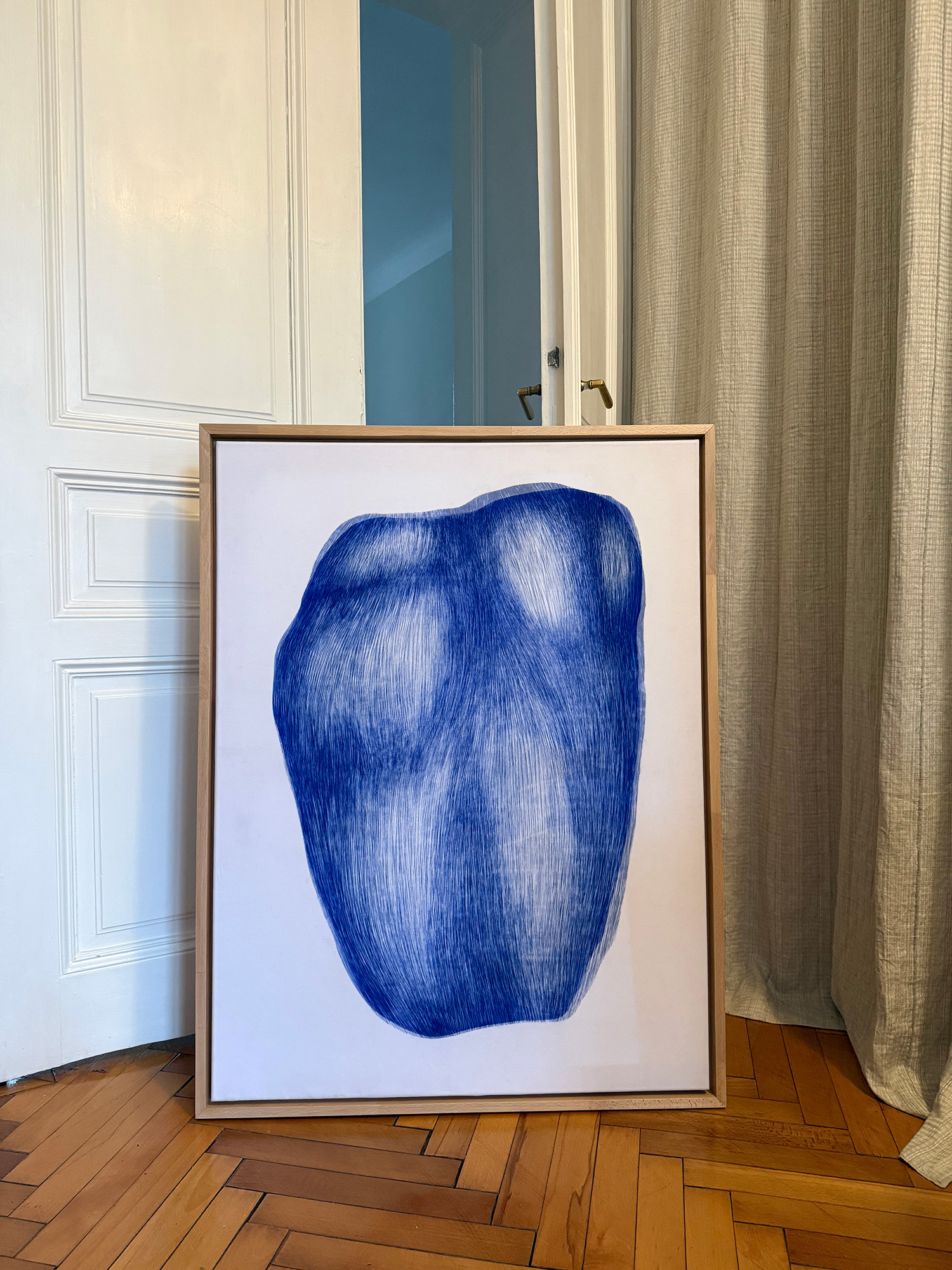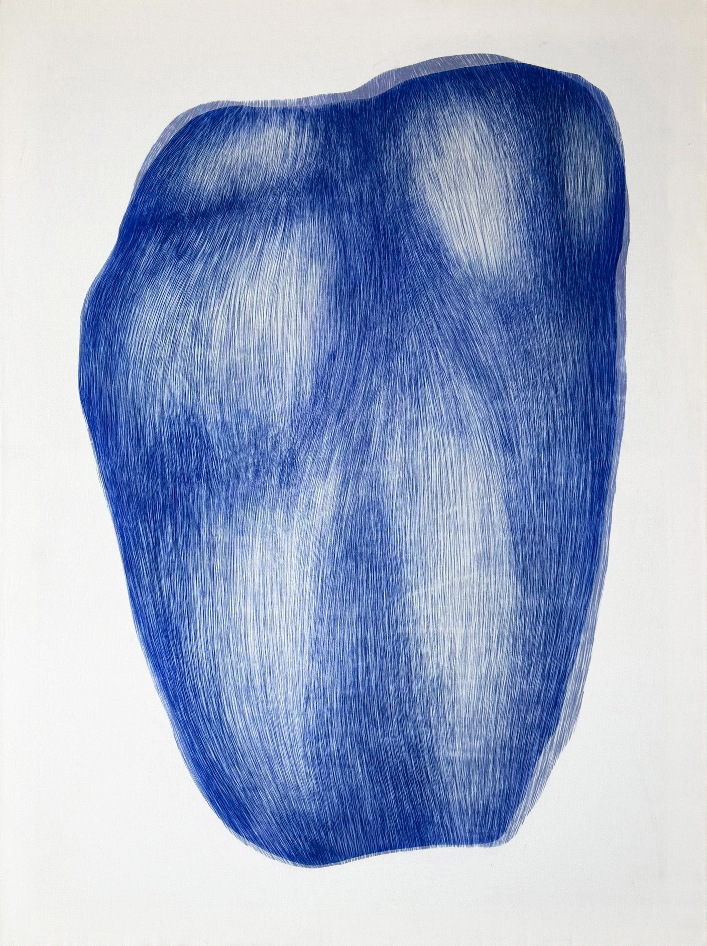 Budowane z tysięcy linii formy pulsują napięciem między miękkością a strukturą, kontrolą a intuicją. Linia staje się zapisem procesu — powtarzalnego, niemal medytacyjnego gestu, który prowadzi do wyłonienia się kształtu.