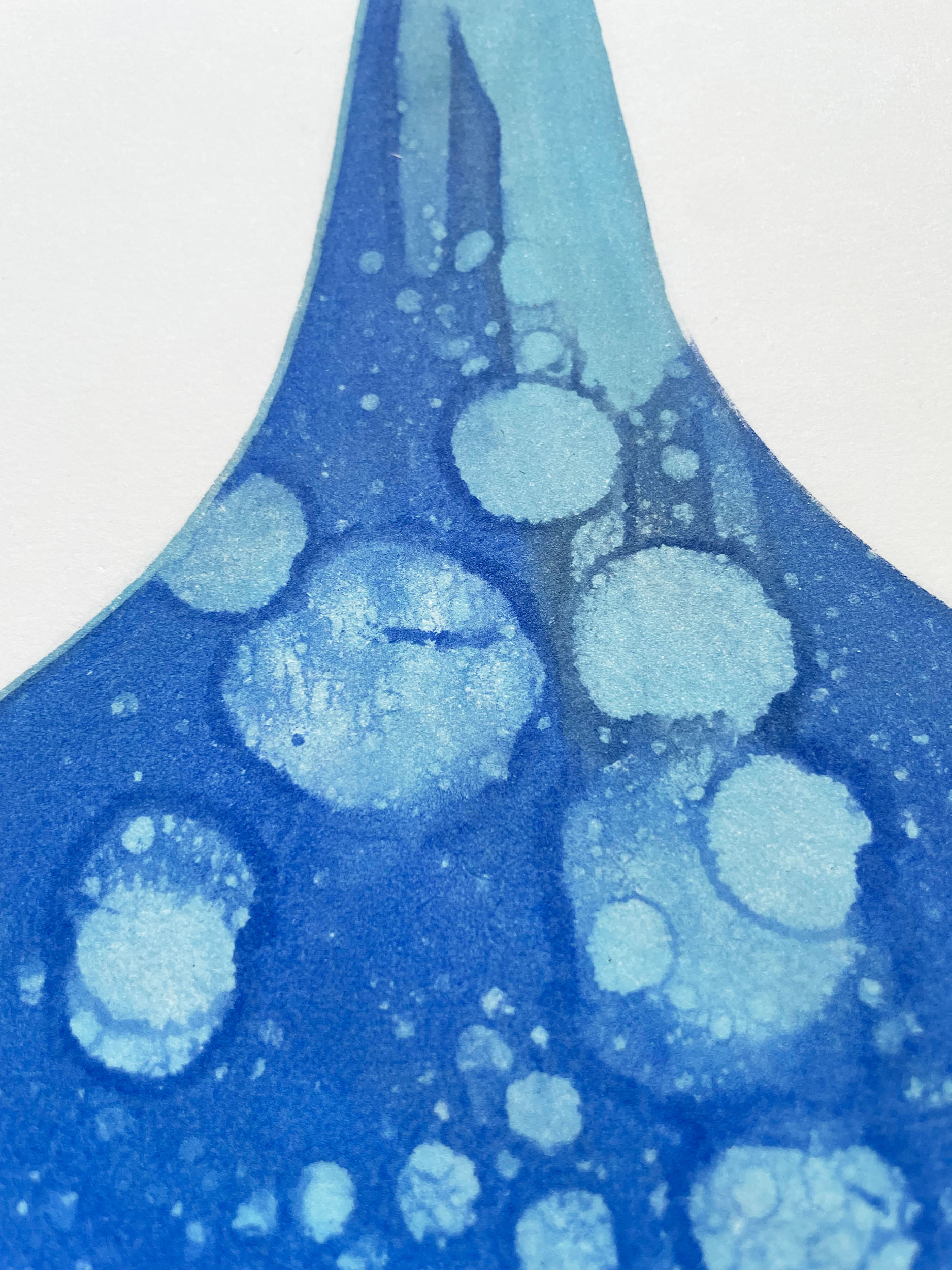 Akwatinta pozwala tej formie oddychać. Powierzchnia pulsuje — pojawiają się skupienia, przejaśnienia, drobne napięcia materii. Jakby coś działo się pod skórą obrazu. Jakby obiekt miał swoje wnętrze, swoją historię.
