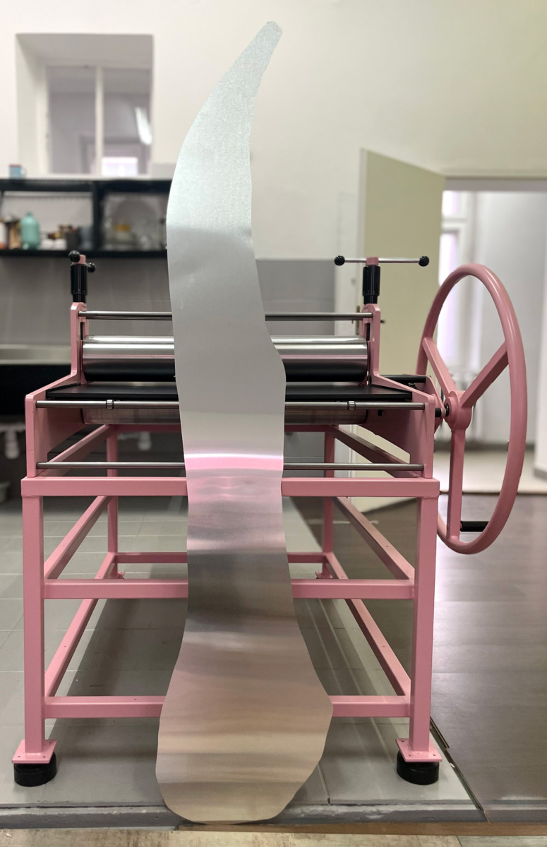 Odsączony mokry papier bawełniany, matryca, filce, nacisk prasy. Kilka ton docisku przenosi farbę z zagłębień na papier. Każda odbitka w nakładzie jest jedyna w swoim rodzaju – to nie jest reprodukcja, to seria wariantów.